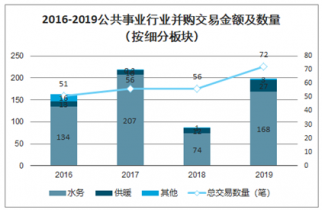 2016-2019公共事業(yè)行業(yè)并購(gòu)交易金額及數(shù)量(按細(xì)分板塊)