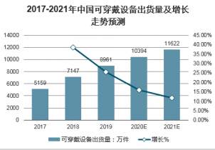 2017-2021年中國可穿戴設備出貨量及增長走勢預測