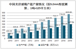 中國光伏玻璃產能產量情況(按3.2mm厚度測算,1噸=125平方米)