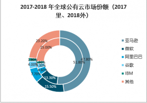 2017-2018 年全球公有云市場份額(%)