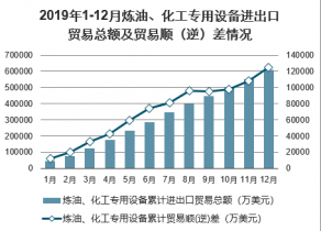 2019年1-12月煉油、化工專用設備進出口貿易總額及貿易順(逆)差情況