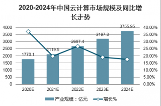 2020-2024年中國云計算市場規模及同比增長走勢