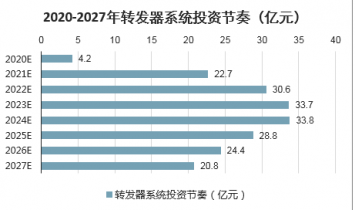 2020-2027年轉(zhuǎn)發(fā)器系統(tǒng)投資節(jié)奏(億元)