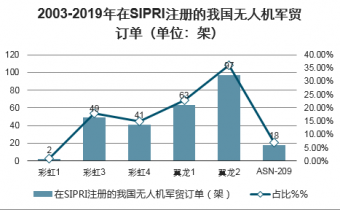 2003-2019年在SIPRI注冊的我國無人機(jī)軍貿(mào)訂單(單位:架)