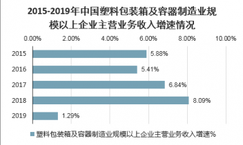 2015-2019年中國(guó)塑料包裝箱及容器制造業(yè)規(guī)模以上企業(yè)主營(yíng)業(yè)務(wù)收入增速情況