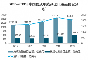 2015-2019年中國集成電路進出口逆差情況分析