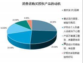 據(jù)調(diào)研發(fā)現(xiàn),授權(quán)產(chǎn)品或體驗(yàn)吸引消費(fèi)者的前三大原因?yàn)橄矏壑С郑?6%)、從眾心理(25%)、沖動性消費(fèi)(19%)。隨著市場上出現(xiàn)的IP越來越多,消費(fèi)者的IP忠誠度也相對下降,而越來越多的授權(quán)IP合作落腳點(diǎn)在營銷推廣上,從品牌跨界出發(fā)創(chuàng)造新意,形成刷屏話題或爆款,這個(gè)環(huán)境下更能鼓勵(lì)和刺激消費(fèi)者消費(fèi)。