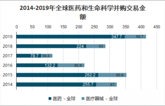 2014-2019年全球醫(yī)藥和生命科學(xué)并購交易金額