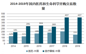 2014-2019年國內(nèi)醫(yī)藥和生命科學(xué)并購交易數(shù)量