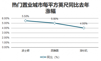 熱門置業(yè)城市每平方英尺同比去年漲幅