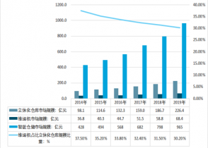 2014-2019年中國堆垛機行業(yè)規(guī)模及占比立體倉庫規(guī)模比重