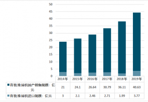 2019年我國有軌堆垛機行業(yè)市場規(guī)模44.4億元,其中,有軌堆垛機進口規(guī)模3.77億元;有軌堆垛機國產(chǎn)銷售規(guī)模40.63億元。