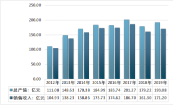 2012-2019年我國制藥專用設備制造行業(yè)產值及銷售收入統計