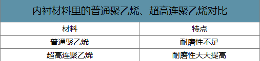 內襯材料里的普通聚乙烯、超高連聚乙烯對比
