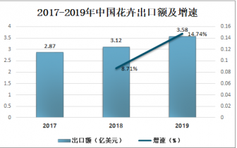 2017-2019年中國(guó)花卉進(jìn)口額及增速