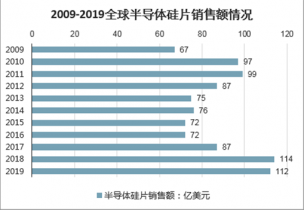 2009-2019全球半導體硅片銷售額情況