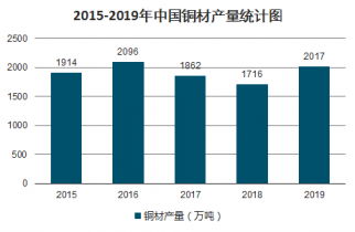2019年,銅材產量為2017萬噸,同比增長12.6%。