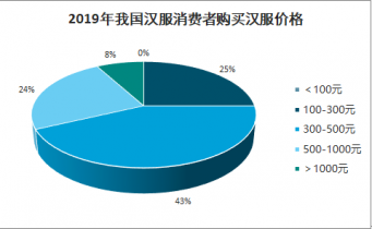 2019年我國漢服消費者購買漢服價格集中在300-500元,占漢服消費者人群比重43%;其次為100-300元和500-100元,漢服消費者比重分別為25%和24%。