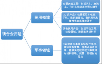鎂合金具備良好的性能優勢,隨著鎂合金產業制造成本的降低和加工工藝的突破,鎂合金的應用領域越來越廣,市場需求量也越來越大。鎂合金的主要用途可分為民用與軍事—航空航天兩大類。