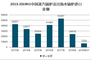 2013-2019H1中國蒸汽鍋爐及過熱水鍋爐進口金額