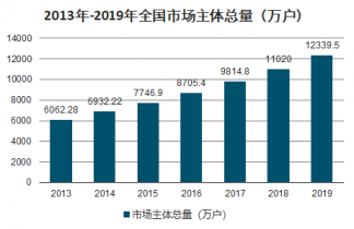 隨著我國“大眾創(chuàng)業(yè)、萬眾創(chuàng)新”政策的推行,以及國家采取了一系列政策支持中小微企業(yè),我國企業(yè)數(shù)量尤其是中小微企業(yè)數(shù)量快速增長。中小微企業(yè)在國民經(jīng)濟中數(shù)量最多,占全部市場主體的比重超過90%,已經(jīng)成為促進國民經(jīng)濟發(fā)展的生力軍,在穩(wěn)定增長、擴大就業(yè)、促進創(chuàng)新、繁榮市場和滿足人民群眾需求等方面,發(fā)揮著極為重要的作用。截至2019年底,全國實有市場主體12,339.50萬戶,其中企業(yè)3,858.30萬戶,個體工商戶8,261.00萬戶,農(nóng)民專業(yè)合作社220.10萬戶。2019年我國新設(shè)市場主體達到新高點,全國新設(shè)市場主體2,377.40萬戶,同比增長10.60%;平均每天新設(shè)6.51萬戶,高于2018年的5.89萬戶