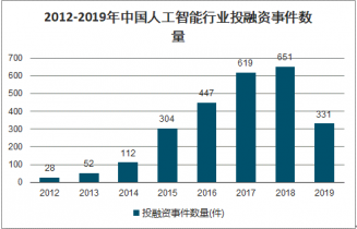 2012-2019年中國人工智能行業(yè)投融資事件數(shù)量