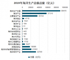 2019年,北部海洋經濟圈海洋生產總值26360億元,比上年名義增長8.1%,占全國海洋生產總值的比重為29.5%;東部海洋經濟圈海洋生產總值26570億元,比上年名義增長8.6%,占全國海洋生產總值的比重為29.7%;南部海洋經濟圈海洋生產總值36486億元,比上年名義增長10.4%,占全國海洋生產總值的比重為40.8%。