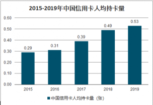 近年來,我國信用卡行業(yè)發(fā)展迅速,截至2019年末,我國信用卡人均持卡量達(dá)0.53張,最近4年年均增長率達(dá)16.27%。