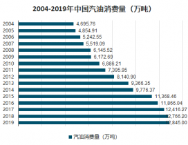 2004-2019年中國汽油消費(fèi)量(萬噸)