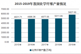 2018年我國化纖產量為5011.09萬噸,2019年達到5827萬噸,同比增長16.28%。“十三五”期間化纖產量以平均每年4.8%的速度增長,略高于“十三五”規劃預估值,基本位于合理區間。