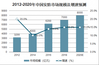 由于國內人民收入的增加,民用安防產品的需求也大大提升,很多高檔社區和高檔別墅的興建拉動了民用安防產品市場的增長,這也導致與安全相關企業的參與度不斷提高,使IT、家用電器、電信等強大的企業進入安全行業。在此背景下,中國的安全產業取得了空前的發展。2017 年,行業總產值達到 6200 億元,行業增長率為 14.8%,其中安全工程產值 3782 億元,安全產品產值 1984 億元,經營服務 434 億元,預計到 2020 年,安全企業總收入將達到8000億元左右,年均增長10%以上,行業增加值將達到 2500 億元。其逐年發展趨勢。可以看出發展勢頭好與社會需求大緊密相關,利益共通。