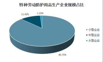 從生產要素角度看,我國技術含量較低的勞動密集型產品占比大,企業生產規模小,產品種類少。在全國 909 家特種勞動防護用品生產企業中,從業人員數量在 10~300 人的小型企業占85.8%,從業人員數量在 300~2000 人的中型企業占 11.5%,大于 2000 人的大型企業僅占 1.2%,且生產規模普遍較小;勞動防護用品生產企業中生產服裝、鞋及安全帽等產品的企業數量較多,而生產呼吸防護用品、眼面部防護用品的企業很少,產品主要集中于技術含量較低的勞動密集型產品;企業生產產品種類少,只生產 1 種產品的企業總計 351 家,占企業總數的 44.7%,只生產 3 種及其以下產品的占 82.3%,大多數企業產品品種單一。
