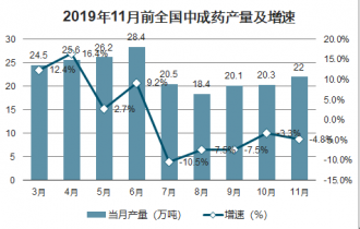 2019年11月前全國中成藥產(chǎn)量及增速