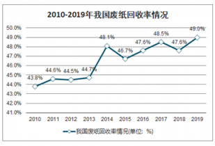 2010-2019年我國廢紙回收率情況