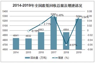 2014-2019年全國廢紙回收總量及增速請況