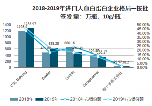 2018-2019年進口人血白蛋白企業格局—按批簽發量:萬瓶,10g/瓶