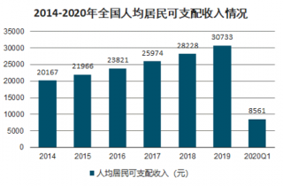 2020年一季度全國居民人均可支配收入8561元,比上年同期名義增長0.8%。其中,城鎮居民人均可支配收入11691元,名義增長0.5%;農村居民人均可支配收入4641元,名義增長0.9%。人均居民收入水平的不斷提高,為服裝行業消費提供經濟基礎。