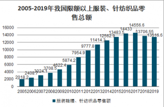 2005-2019年我國限額以上服裝、針紡織品零售總額(億元)