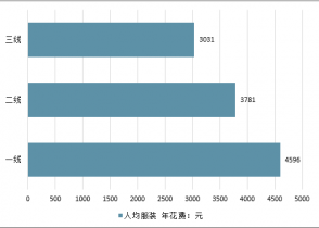 一二線城市人均服裝花費情況