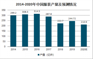 2019年,服裝產量略有反彈。2019年1-12月,我國服裝行業規模以上企業累計完成服裝產量244.72億件,同比增長3.28%。2020年1-3月,服裝行業規模以上企業累計完成服裝產量46.18億件,同比下降20.3%。在疫情影響背景下,2020年我國服中裝行業規模以上企業累計完成服裝產量約210.9億件,同比下降13.8%。