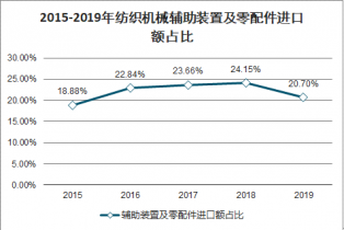 2015-2019年紡織機(jī)械輔助裝置及零配件進(jìn)口額占比
