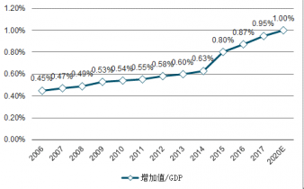 2006-2020年與我國(guó)體育產(chǎn)業(yè)增加值與GDP占比趨勢(shì)預(yù)測(cè)