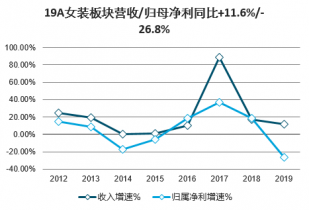 19A女裝板塊營收/歸母凈利同比+11.6%/-26.8%
