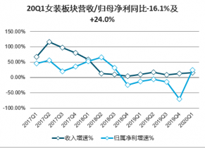 20Q1女裝板塊營收/歸母凈利同比-16.1%及+24.0%