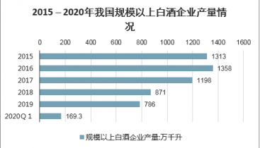 2015-2020年我國規(guī)模以上白酒企業(yè)產(chǎn)量情況