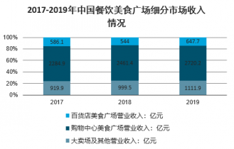 2017-2019年中國餐飲美食廣場細分市場收入情況