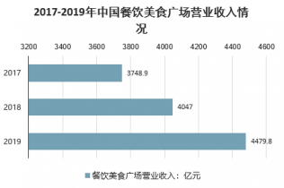 2017-2019年中國餐飲美食廣場營業收入情況
