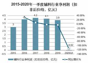 2015-2020年一季度輔料行業凈利潤(扣非后歸母,億元)
