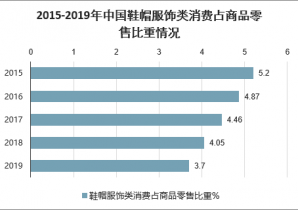 2015-2019年中國鞋帽服飾類消費占商品零售比重情況