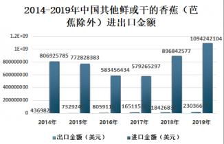 2014-2019年中國其他鮮或干的香蕉(芭蕉除外)進(jìn)出口金額